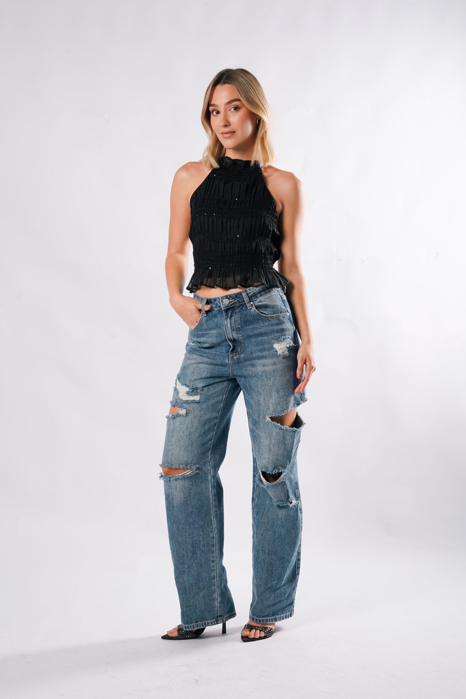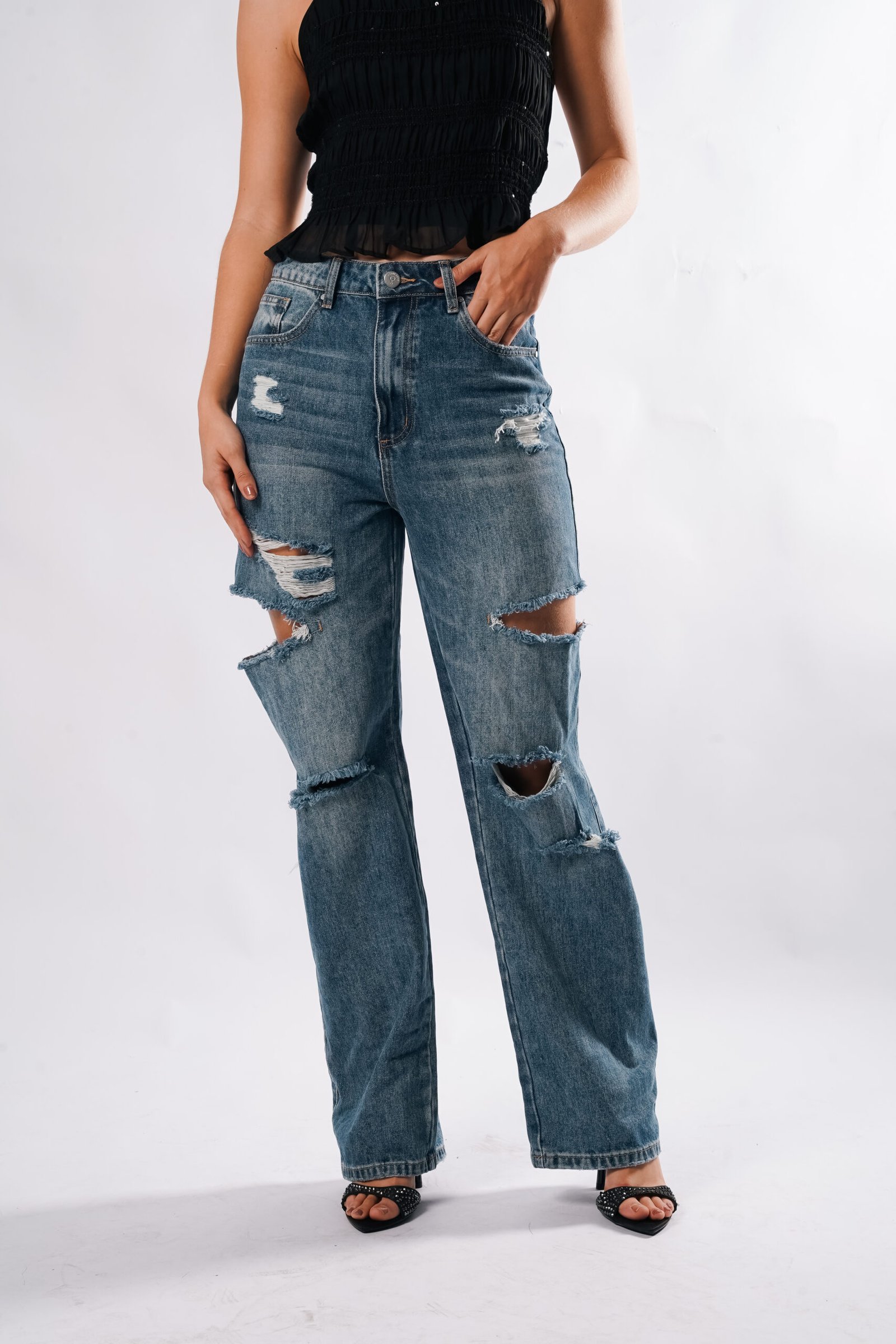 JEAN TIRO ALTO. FIT RECTO Y CORTES ASIMÉTRICOS EN LA PIERNA. PERFECTO DARLE UN TOQUE AUTENTICO A TUS OUTFITS.