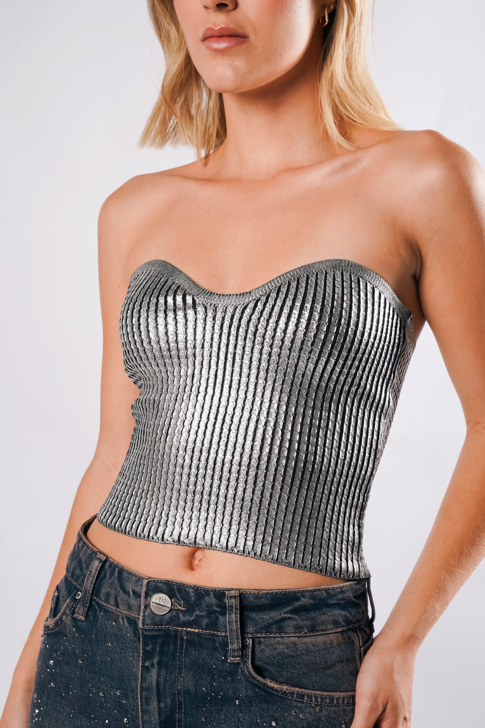 SILVER STRAPLESS TOP